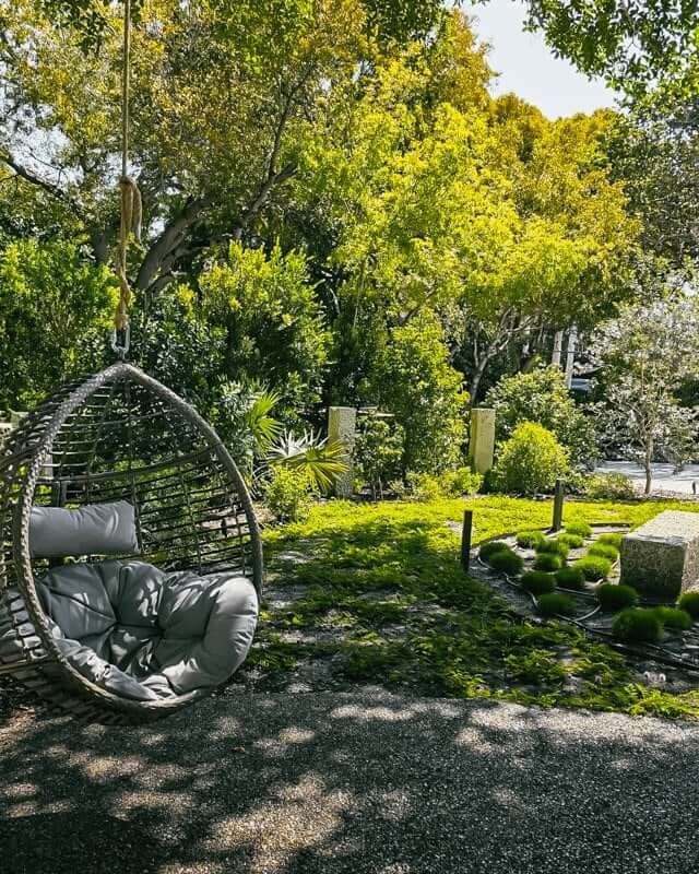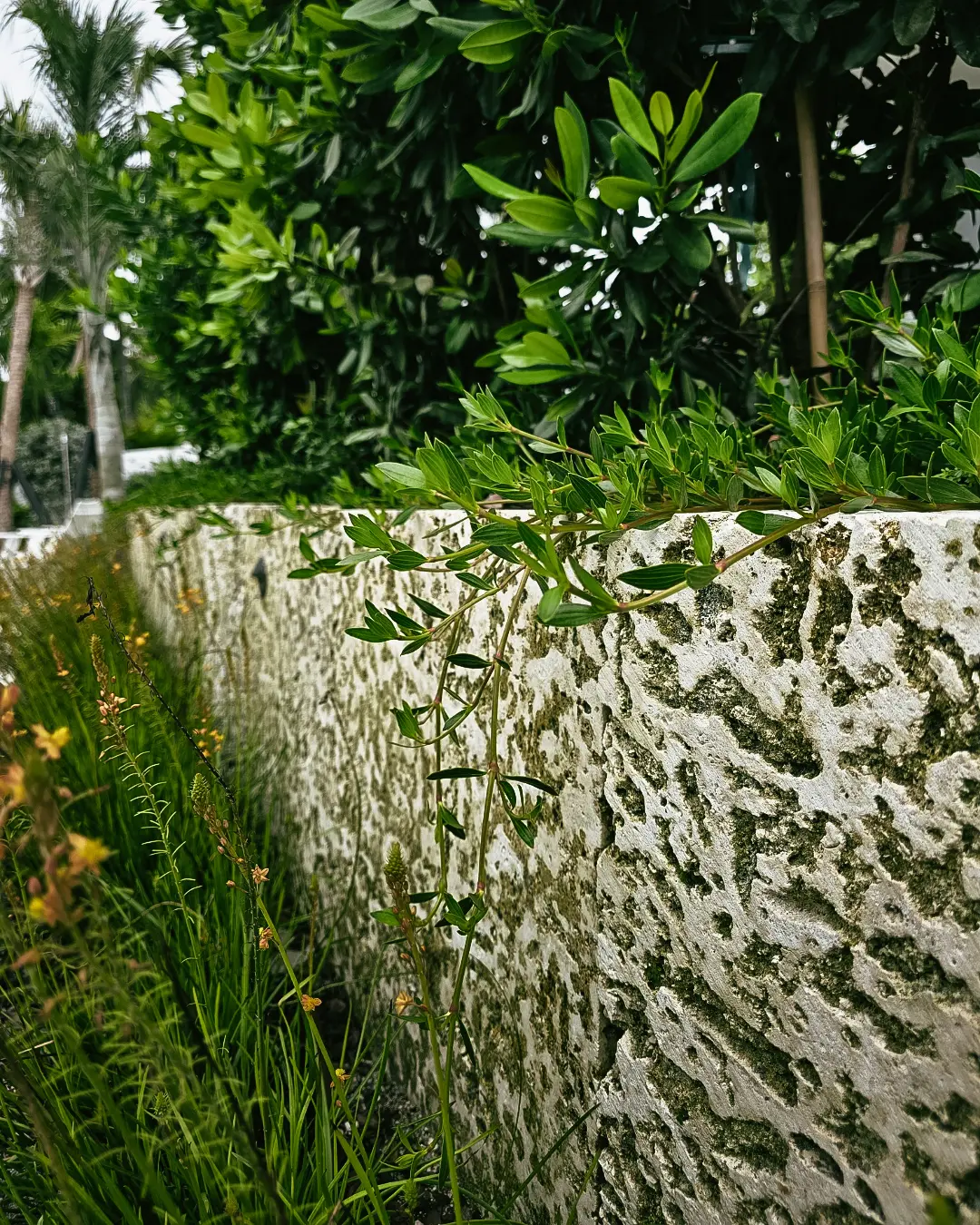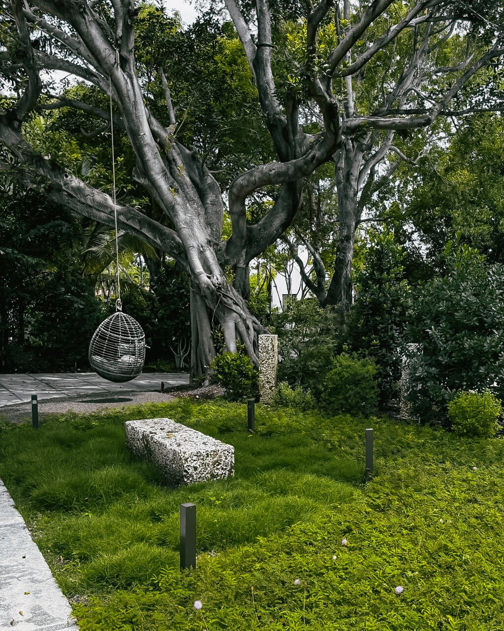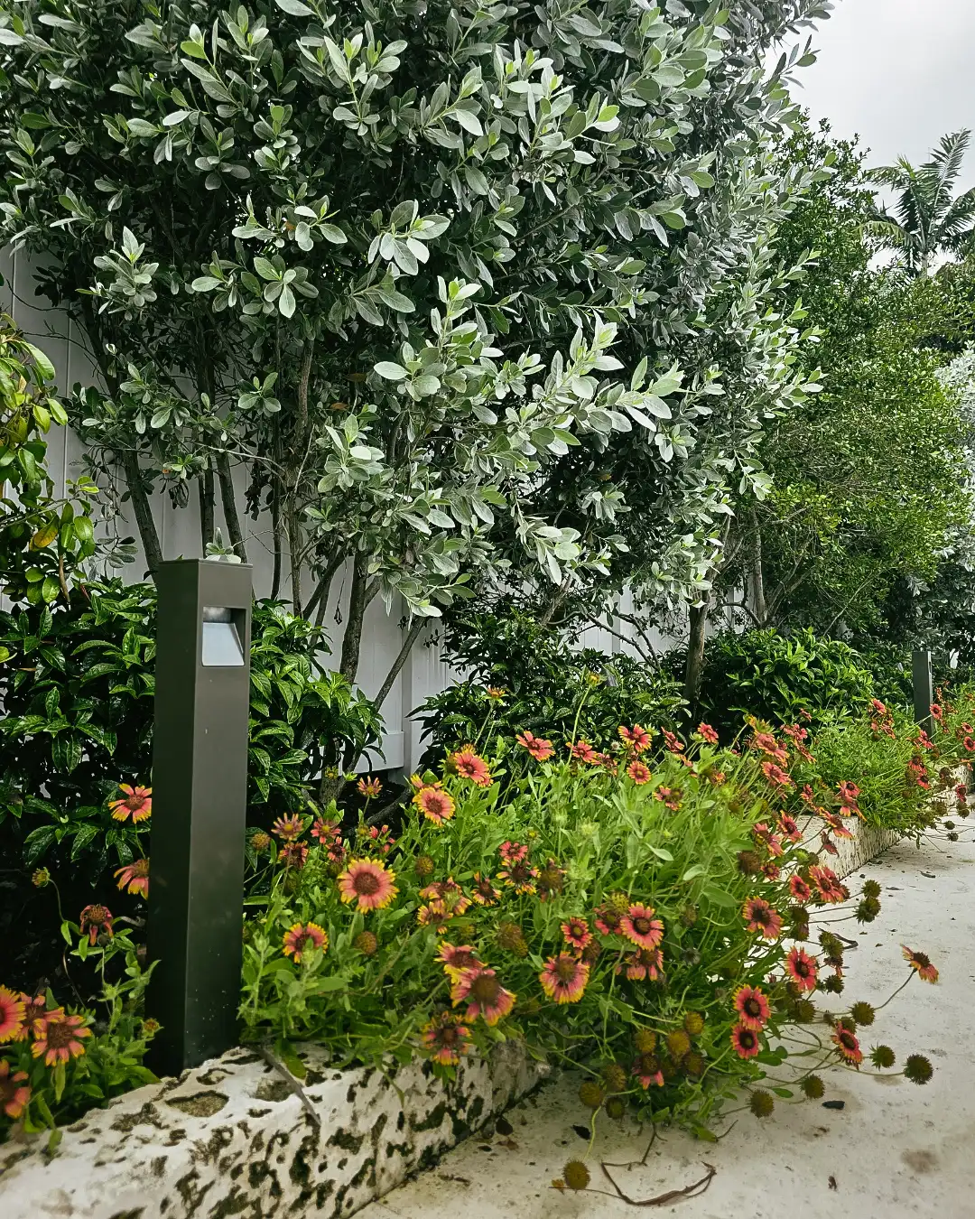 The front driveway was also converted into a private oasis surrounded by native trees and oolite features. The space is filled with aromatics and a full buffet for friendly visitors like red cardinals, blue jays, and woodpeckers.