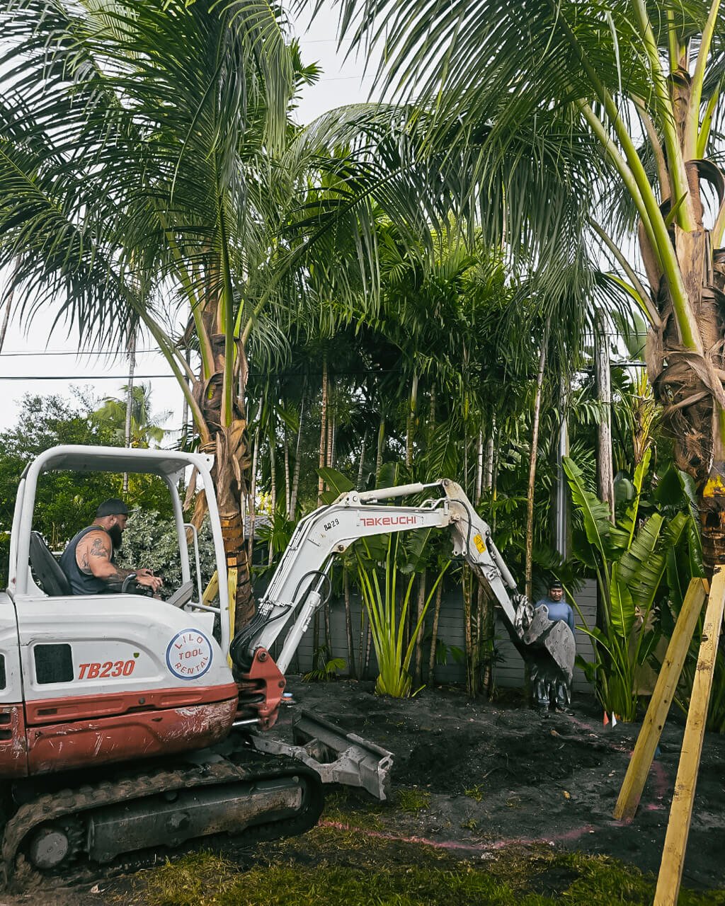 Imagine kicking back and cooling off in this beautiful custom plunge pond, the centerpiece of a backyard renovation we completed last year. Flanked by two massive Maypan coconuts and an array of natives and tropicals, this unassuming overgrown corner was converted into a highlight of the property.