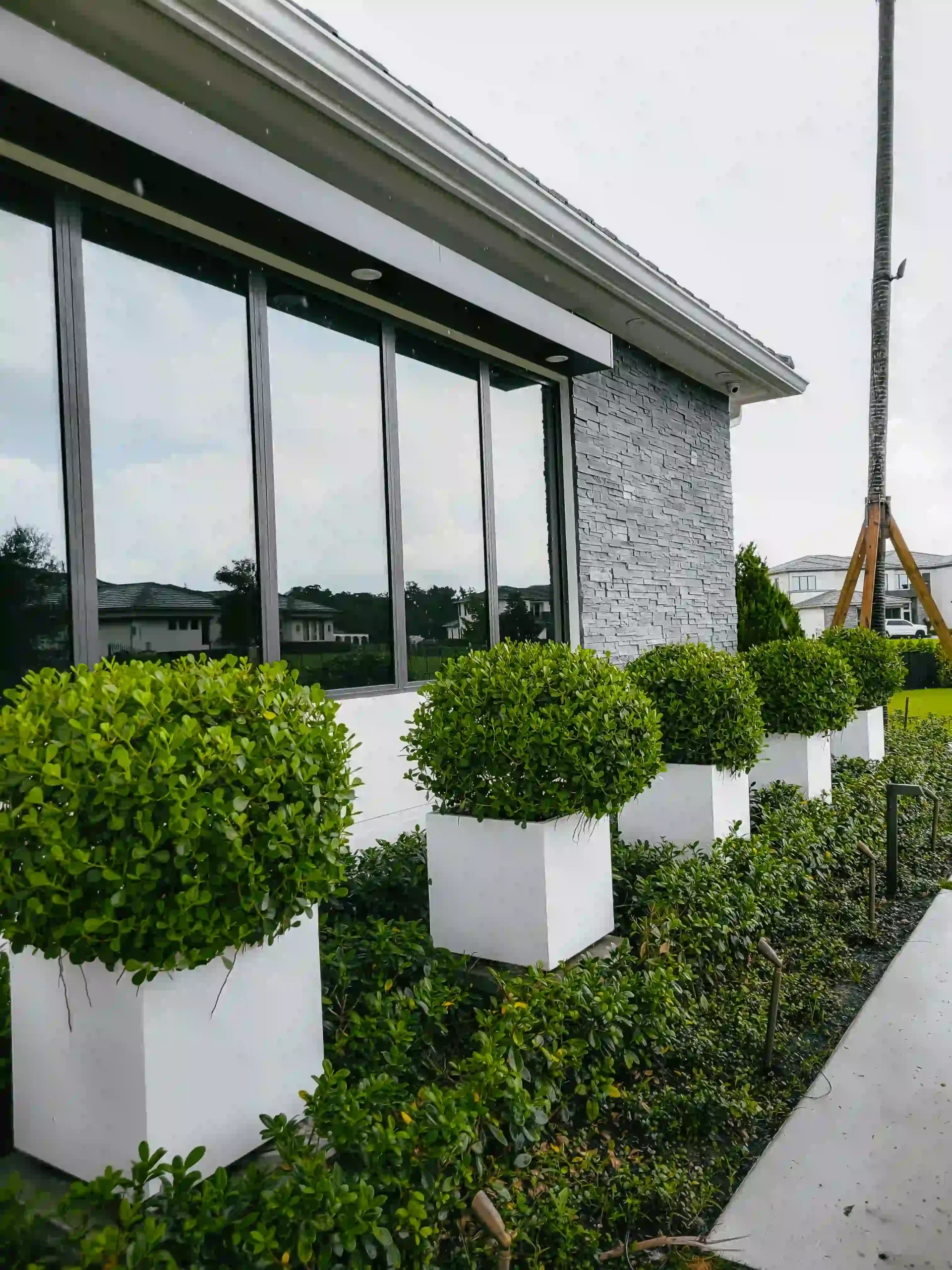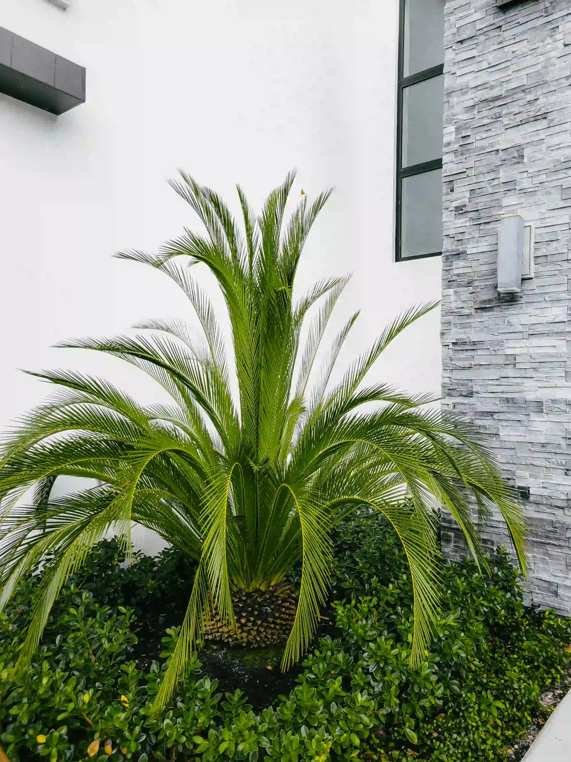 When a landscape lives up to the grandeur of a house, the entire property is propelled to a new level. Our client asked for a 5-Star resort vibe for this massive property in SW Ranches, and we delivered an impressive entrance with ‘Zahidi’ date palms, ‘Brodie’ Junipers and Macrozamia moorei cycads.